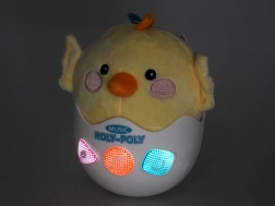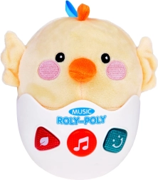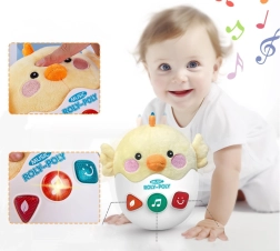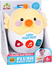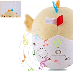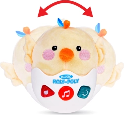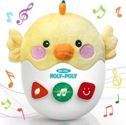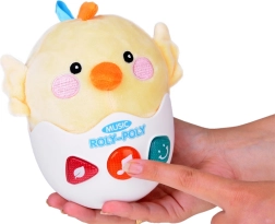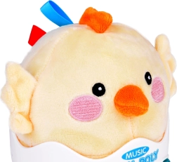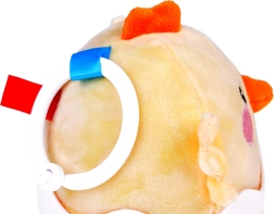 Het schommelende muzikale kuikentje is de ideale metgezel voor rustig inslapen en speelse zintuiglijke stimulatie. Het zachte pluche lijfje nodigt uit tot aanraken, terwijl de plastic “schelp” met kleurrijke knoppen uitnodigt om te ontdekken. Na het inschakelen klinkt een korte, aangename melodie en de knoppen lichten op in het ritme van de muziek en geluiden.