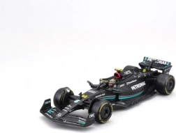 Natuurgetrouwe verhoudingen, authentieke sponsorbedrukking en aerodynamische elementen benadrukken de race‑DNA van de Mercedes‑AMG W14 E Performance uit het seizoen 2023.