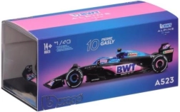 Iconische teamkleuren in blauw, roze en zwart, authentieke logo’s van sponsors BWT, ALPINE en Castrol en aerodynamische vormen – dit model biedt de realistische uitstraling van de echte Alpine A523 (seizoen 2023). Op schaal 1:43 komt het prachtig tot zijn recht in elke vitrine.