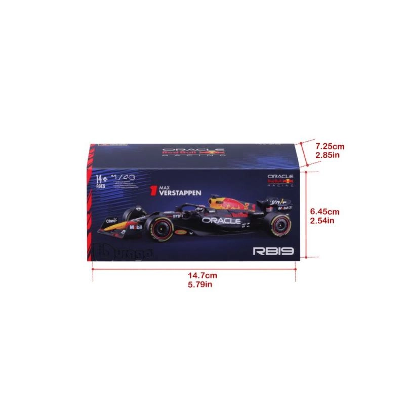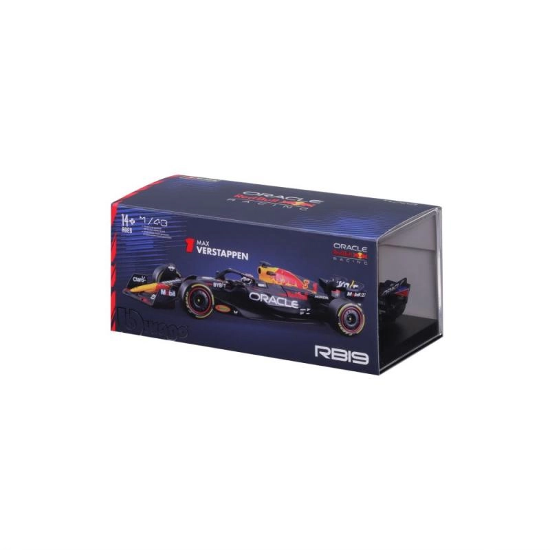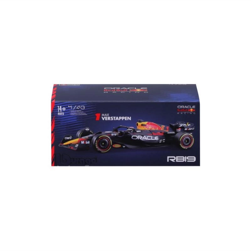 Geniet van een topklasse replica van de kampioenschapswagen RED BULL RACING RB19 (2023) in iconische zwart-blauwe uitvoering met rode en gele accenten. Het model in schaal 1:43 vangt de aerodynamische lijnen, wieldetails en nauwkeurige sponsorstickers, inclusief Oracle, tot in detail. Inclusief coureursfiguur Max Verstappen in de cockpit.