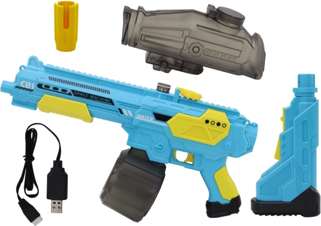 Geniet volop van de zomer met het accu‑waterpistool M416 in blauw‑gele uitvoering. Het biedt automatisch vuren, twee watertanks met een totale capaciteit van 500 ml en een bereik tot 9 meter. Dankzij de oplaadbare 7,4 V‑batterij en de comfortabele aan/uit‑schakelaar is het ideaal voor lange watergevechten in de tuin of op het strand.