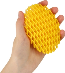 De speciale structuur stimuleert de tactiele receptoren in de handpalmen, wat zorgt voor aangename en rustgevende sensorische waarnemingen. Bovendien helpt het kinderen bij de ontwikkeling van handmatige vaardigheden door middel van plezier.
