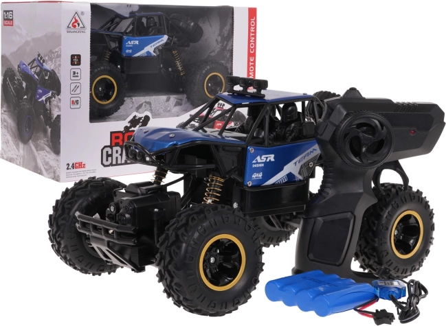 Duurzame RC-crawler op schaal 1:16 met metalen carrosserie en 4x4-aandrijving bedwingt terrein waar normale auto's niet komen. Dankzij de grote rubberen banden met profiel, de hoge veerophanging en de antikraak-constructie neemt hij obstakels moeiteloos. De 2,4 GHz-zender zorgt voor soepel sturen in alle richtingen en een stabiel bereik. Oplaadbare 4,8 V-accu is inbegrepen.