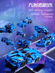 Deze veelzijdige 9-in-1 bouwset in blauw biedt uren aan creatieve fun. Bouw diverse modellen van raceauto’s, een bolide, truck of pick-up en voorzie ze van de meegeleverde stickers. De voertuigen worden gevoed door een 3,7 V-accu (inbegrepen), opladen gebeurt via de USB-kabel.