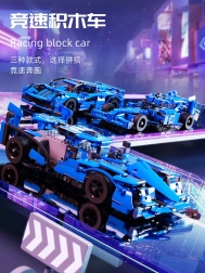 Blauwe sportwagens met aerodynamische vormen en gedetailleerde afwerking zien er geweldig uit op de plank én in actie. Inclusief stijlvolle stickers.