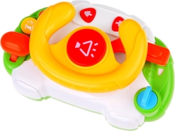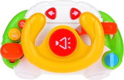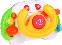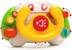 Dit kleurrijke kinderstuurtje stimuleert fantasie, zintuiglijke ontwikkeling en handcoördinatie. Kinderen kunnen het stuur naar rechts en links draaien, het sleuteltje gebruiken om de motor te “starten” en richtingaanwijzers met echte geluiden inschakelen. Vrolijke melodieën en lichteffecten houden kleine bestuurders geboeid, thuis en onderweg.