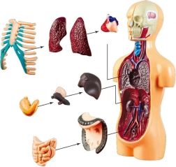 Compact mini-model van het menselijk lichaam met een hoogte van ongeveer 15 cm met een realistische doorsnede en uitneembare organen is het ideale hulpmiddel voor het leren van anatomie thuis en op school. Biedt een overzichtelijke ordening van organen, stevige uitvoering en een leuke, interactieve manier van leren.