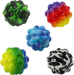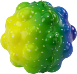 Een kleurrijk balletje met bobbels met een diameter van 6,5 cm is een geweldig speeltje voor zowel kinderen als volwassenen. Dankzij de textuur ligt het prettig in de hand en is het geschikt om mee te stuiteren, te kneden en voor sensorische stimulatie. De verschillende kleuren vallen meteen op en ondersteunen de ontwikkeling van de fijne motoriek en het visuele waarnemingsvermogen. Ideaal voor onderweg, op school en thuis.