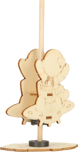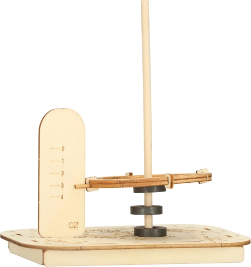 Laserprecies uitgesneden houten onderdelen passen in elkaar zonder lijm of gereedschap. Kinderen leren tijdens het bouwen de basis van mechanica, overbrengingen en balans.