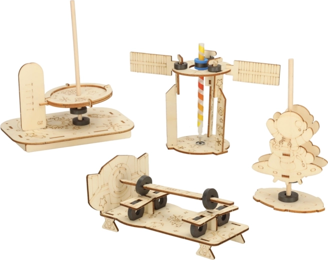 Deze educatieve set biedt vier slimme experimenten die kinderen de principes van de natuurkunde duidelijk laten zien – van aantrekkingskracht en afstoting van magneten tot balans en tandwielen. Alle modellen zijn van duurzaam hout en ontworpen voor veilige en eenvoudige montage zonder lijm en zonder gereedschap. Inclusief magneten (15×) en 12 stiften voor de creatieve afwerking van de projecten.
