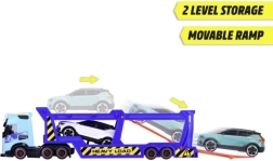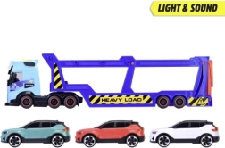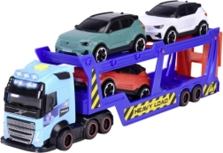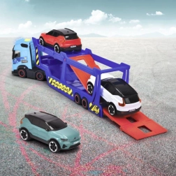 De realistische autotransporter VOLVO FH16 zal alle kleine chauffeurs blij maken. Hij biedt licht- en geluidseffecten, freewheel voor soepel rijden en een aanhanger voor het vervoeren van auto's. In de verpakking zitten 3 auto's VOLVO XC40 RECHARGE. De lengte van de set is 40 cm.