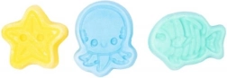 De set bevat vormpjes met motieven van een zeester, octopus en visje. Daarmee maak je prachtig gedetailleerde zepen met een zeethema.
