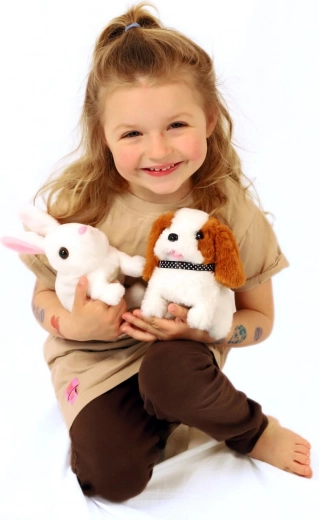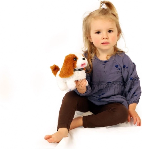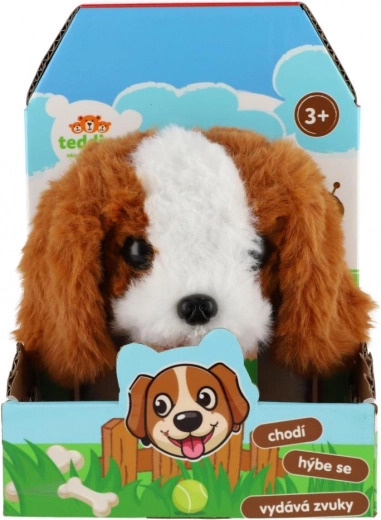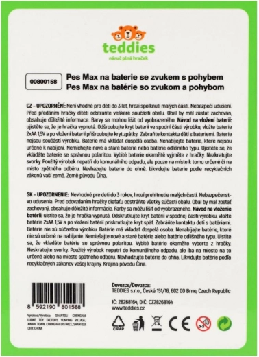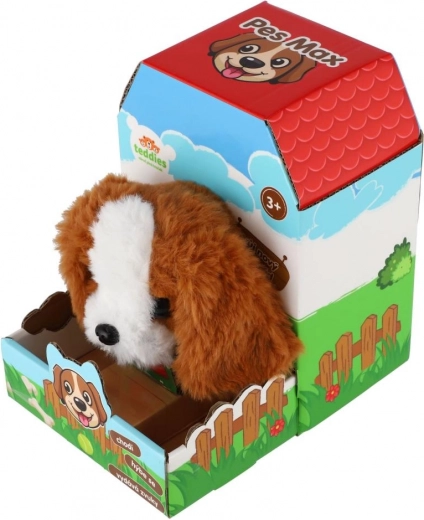De schattige interactieve puppy Max van het merk Teddies maakt elk kind blij. Hij kan vooruit en achteruit lopen en maakt realistische blafgeluiden. Hij is heerlijk zacht om te knuffelen, licht voor kinderhandjes en wordt geleverd in een doos die dient als een stijlvol hondenhok. Ideaal voor fantasiespel en als eerste pluchen vriendje.