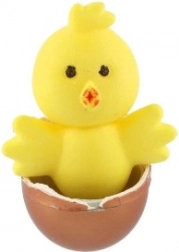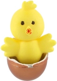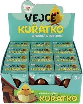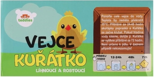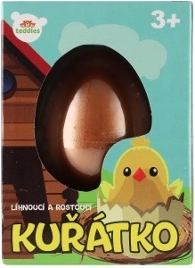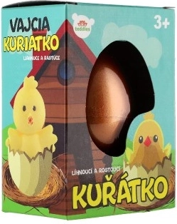 Dompel het ei in een kom met water en observeer hoe het magische kuikentje zich uit het ei werkt.