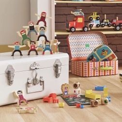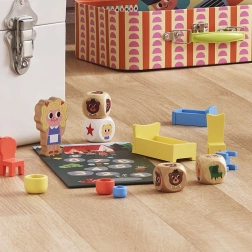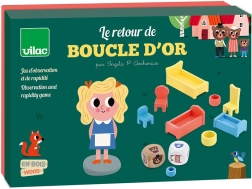 Het spel wordt aanbevolen voor kinderen vanaf 3 jaar en bevat verschillende spelelementen die voor plezier zorgen bij jong en oud. Het spel bevat: 1 kartonnen speelbord, 1 houten Goudlokje, 2 houten dobbelstenen, 3 houten bedden, 3 stoelen, 3 kommen en 1 katoenen zak.