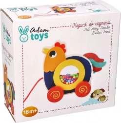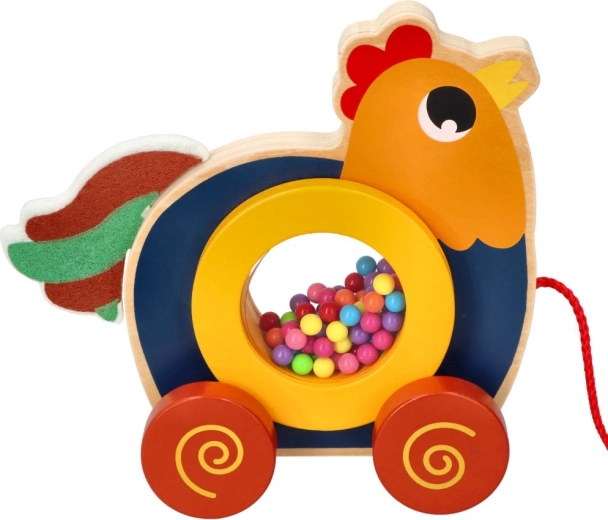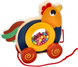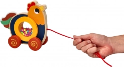 Geef je kinderen plezier in bewegen met dit unieke houten trekdiertje in de vorm van een haan. Dit speelgoed valt niet alleen op door het kleurrijke ontwerp, maar verbetert ook de motorische vaardigheden dankzij het eenvoudige trekmechanisme. De haan is uitgerust met bonte kralen in het ronde gedeelte die bij beweging geluid maken en zo de zintuiglijke ontwikkeling van kinderen ondersteunen. Het treksnoer van 60 cm zorgt voor gemakkelijke hantering.