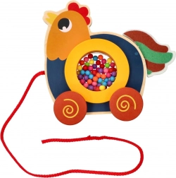 De aantrekkelijke kleurencombinatie en het haanvormige design spreken ieder kind aan. Kleurrijke kralen zorgen voor extra visuele aantrekkingskracht.