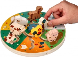 Ontdek de charme van de houten puzzel met boerderijdieren, die niet alleen leuk is maar ook educatief. Deze spelactiviteit leert kinderen verschillende diersoorten herkennen en verbetert hun fijne motoriek.