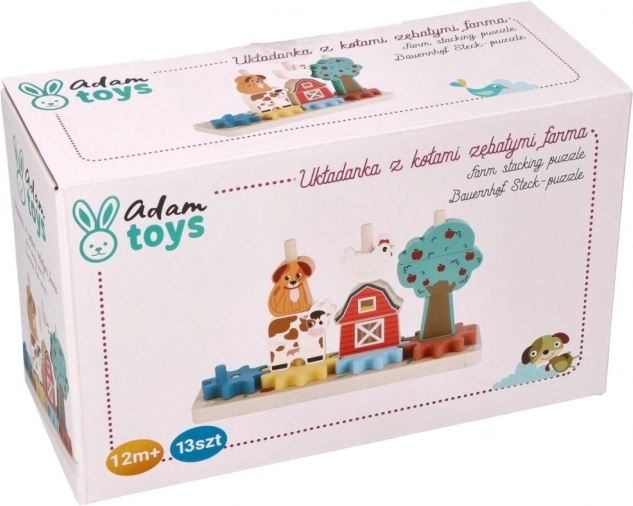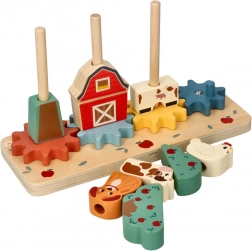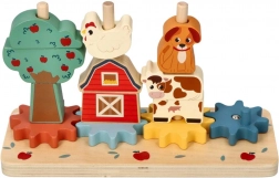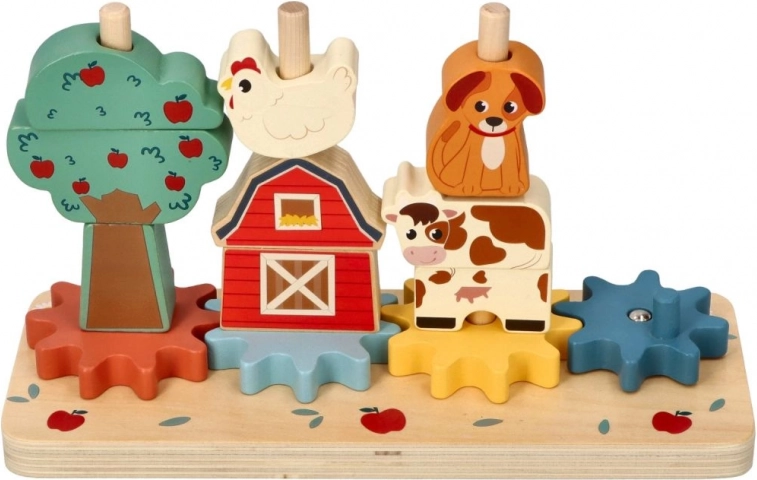 De puzzel 'Gekke boerderij' is ontworpen om de speelse verbeelding van kinderen te verrijken met houten elementen in levendige kleuren. Dankzij de onderdelen in de vorm van een boerderij, bomen en dieren leren kinderen stukken strategisch te plaatsen en uitdagingen in spel om te zetten. Het speelgoed is uitgerust met tandwielen, waardoor kinderen de principes van mechanica kunnen ontdekken.