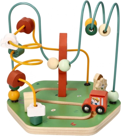 Deze kleurrijke houten kralenlabyrint met boerderijthema biedt veel plezier en ondersteunt tegelijk de ontwikkeling van belangrijke vaardigheden bij kinderen. Kinderen zullen het leuk vinden om de kralen over de kronkelende banen te schuiven en boerderijelementen te ontdekken, zoals de tractor en de kip. Dit product is geschikt voor kinderen vanaf 18 maanden en zorgt voor veilig, verrijkend en leerzaam spel.