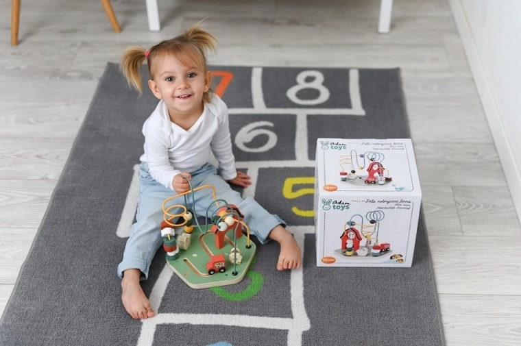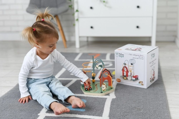 Het labyrint is ergonomisch ontworpen voor kleine handjes en stimuleert verder zelfstandig spelen en creatieve vaardigheden dankzij de levendige kleuren en de gevarieerde vormen van de kralen. Dankzij de robuuste houten basis en metalen draden is het zeer duurzaam.