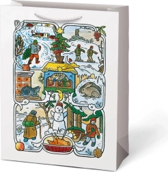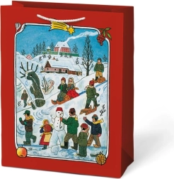 Zoekt u een snelle, stijlvolle en representatieve cadeauverpakking? De papieren kersttas met motieven van JOSEF LADA blinkt uit door traditionele winterillustraties en degelijke afwerking. Dankzij het stevige handvat draagt ze comfortabel en met het label kunt u persoonlijk een boodschap toevoegen zonder extra inpakwerk.