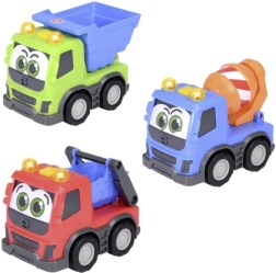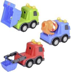 Kies tussen een kipper, een betonmixer en een klassieke vrachtwagen, elk met unieke eigenschappen voor gevarieerd spel.