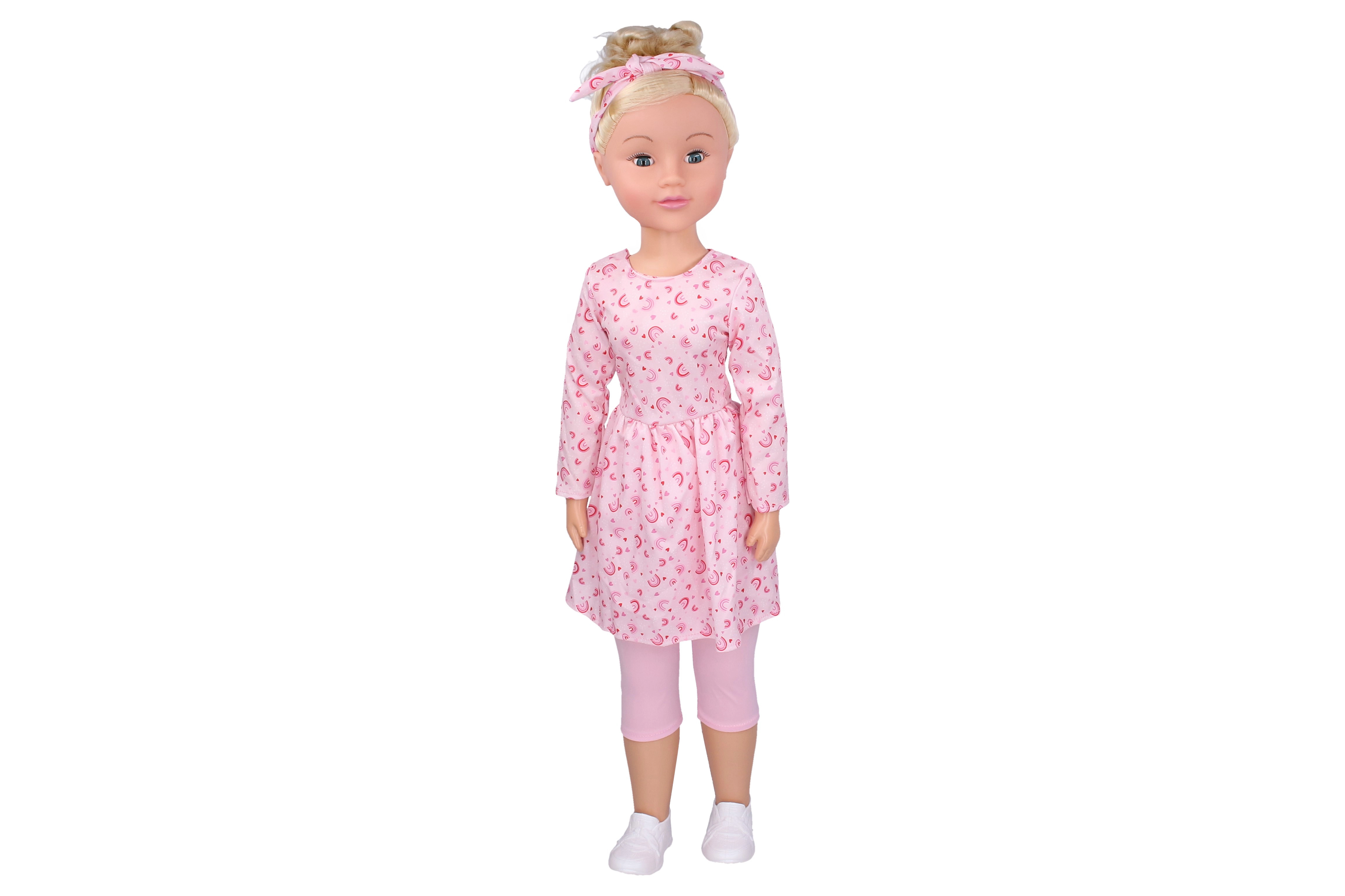 Een schattige lopende pop met een hoogte van 76 cm die elk kind zal blij maken. Dankzij haar formaat oogt ze realistisch, ze heeft knipperende ogen en beweegt elegant tijdens het lopen. Geweldig voor vader-en-moederspel, het ontwikkelen van fantasie en zorgzaamheid.