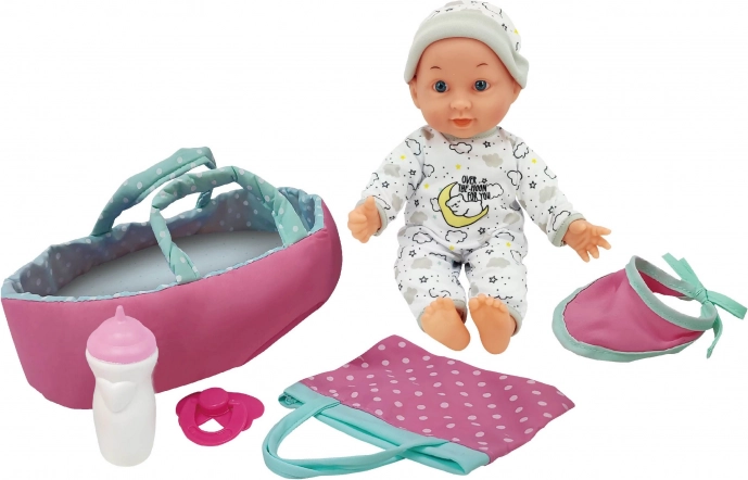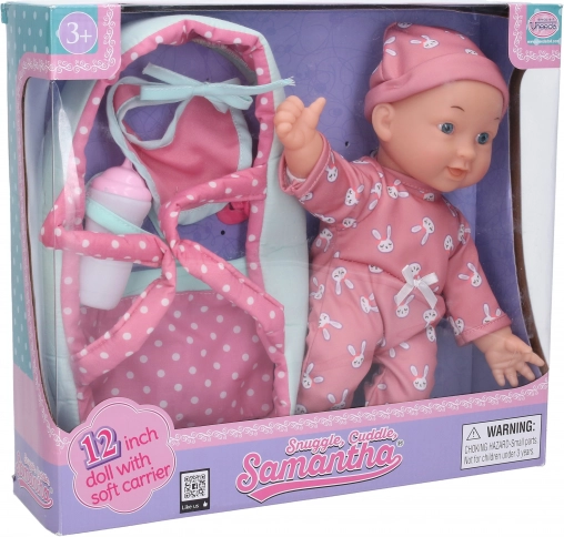 Zacht baby’tje met draagtas is het ideale speelgoed voor kleine kinderen die voor hun poppen willen zorgen. Met een lengte van 30 cm is het compact en makkelijk mee te nemen.