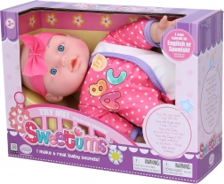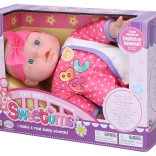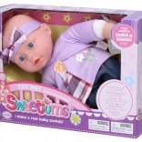 Deze pop wordt geleverd met een flesje en drie AG13-batterijen, die bij de verpakking zijn inbegrepen. Beschikbaar in drie verschillende varianten.