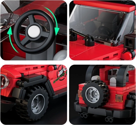 Ontdek een leuke bouwset waarmee kinderen een realistische rode terreinwagen bouwen en hun fijne motoriek, ruimtelijk inzicht en geduld ontwikkelen. Delen van hoogwaardige ABS klikken stevig vast en zorgen voor een lange levensduur van het model.