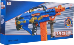 Beleef actieve fun met de automatische blaster BLAZE STORM in het blauw. Deze kindvriendelijke karabijn met een hoogcapaciteitsmagazijn en foamkogels schiet tot ca. 15 m ver. Eenvoudige bediening, ergonomische greep, stabiliserende bipod en veilige zachte darts voor zorgeloos speelplezier binnen en buiten.