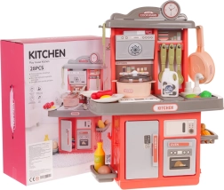 De kraan met watercirculatie (pompje) voegt authenticiteit toe, terwijl de rijke accessoires – servies, keukengerei en etenswaren – kinderen in staat stellen een “menu” naar eigen fantasie te maken. De keuken werkt op 3× AA 1,5 V (niet inbegrepen).