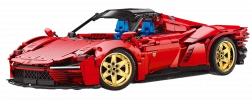 De bouwset van de rode sportauto is de perfecte keuze voor alle autoliefhebbers en constructieve uitdagingen. Het model is uitgerust met openslaande deuren en een neerklapbare achtersteven, wat zorgt voor authenticiteit.