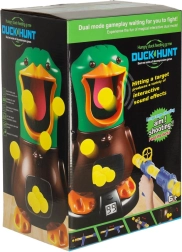 Inhoud van de set: eend met LCD-teller, 2 pistolen, 24 foam balletjes. Het product wordt geleverd in een kartonnen verpakking.
