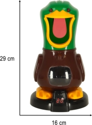 Het spel is gemaakt van duurzaam plastic en is veilig voor thuisgebruik dankzij de zachte foam balletjes. Laden is eenvoudig – de balletjes worden voorin in de loop geplaatst en het schot wordt gelost door het achterste deel van het pistool naar voren te duwen. De eend heeft compacte afmetingen, is makkelijk mee te nemen en houdt kinderen urenlang bezig.