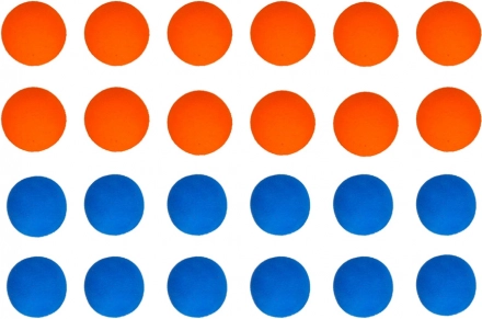 De set bevat 24 foam balletjes met een diameter van 2,5 cm in verschillende kleuren. Ze zijn licht, zacht en vriendelijk voor meubels, ideaal voor binnenspelen.