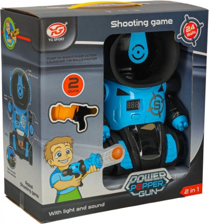 Het schietspel met robot ontwikkelt oog-handcoördinatie, precisie en snelle reflexen. Het doel is het midden van de robothoofd te raken – elke treffer wordt geregistreerd op het LCD-display en gaat gepaard met geluids- en lichteffecten. Dankzij de twee pistolen geniet je van competitie en teambuilding.