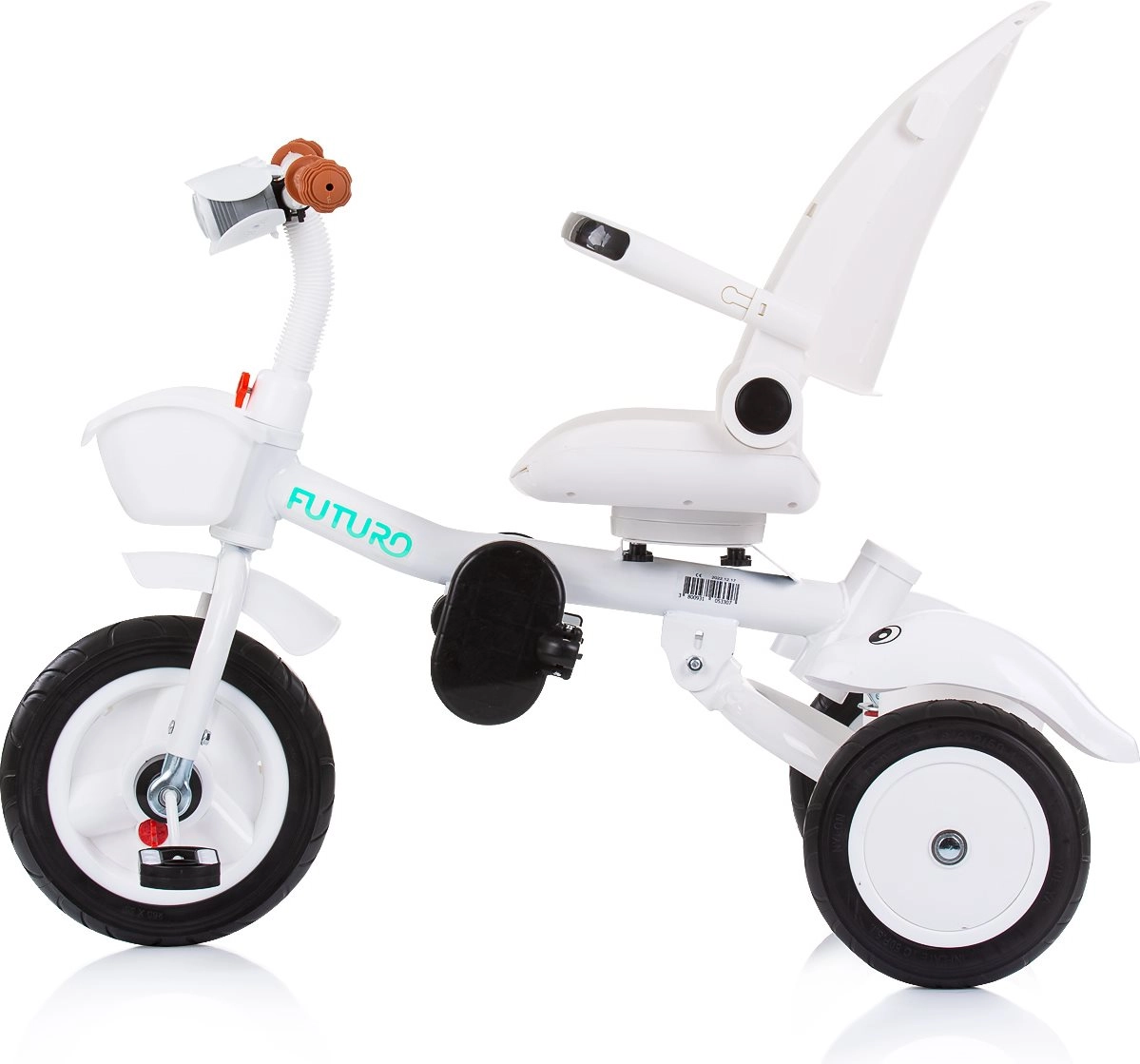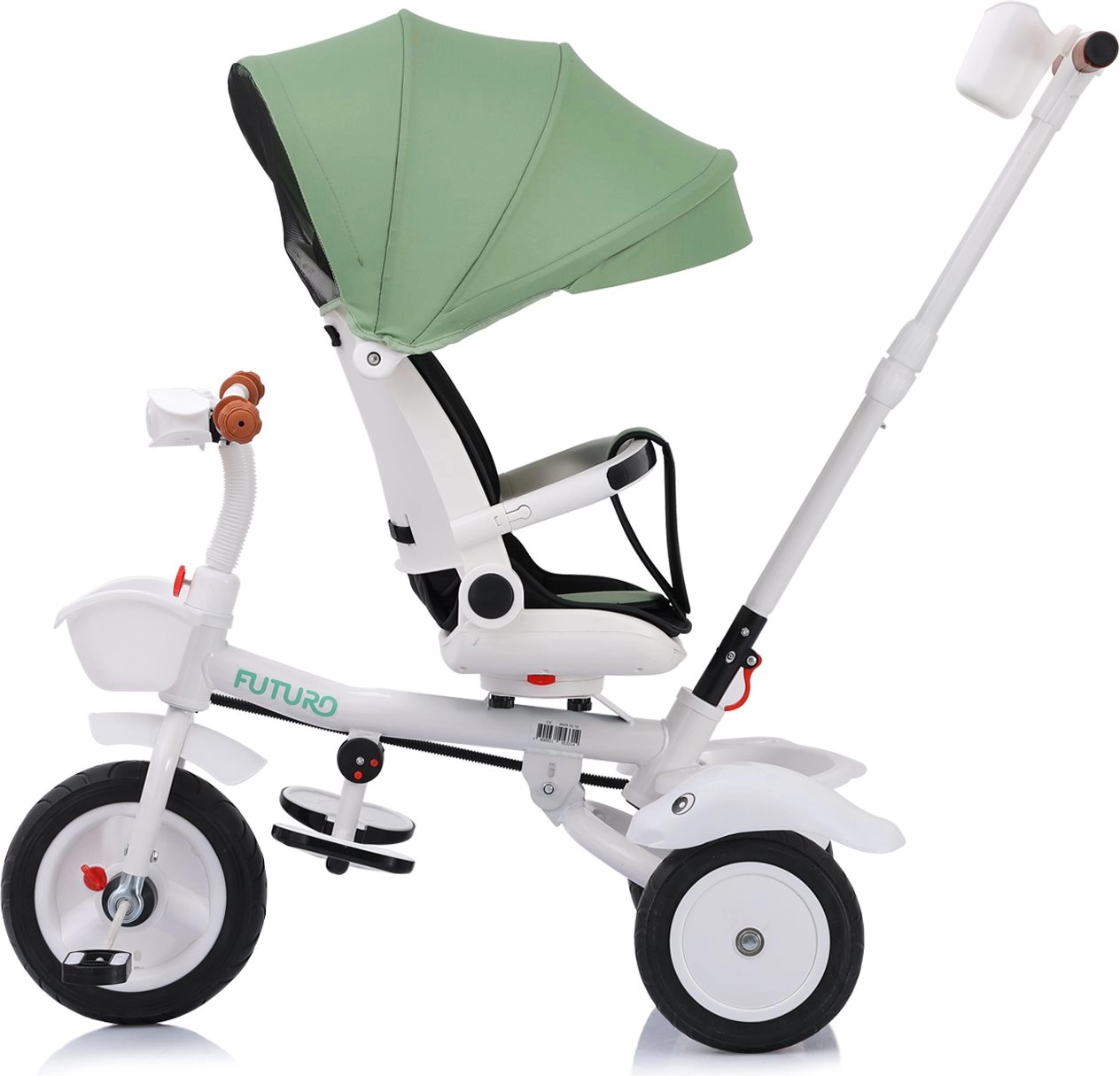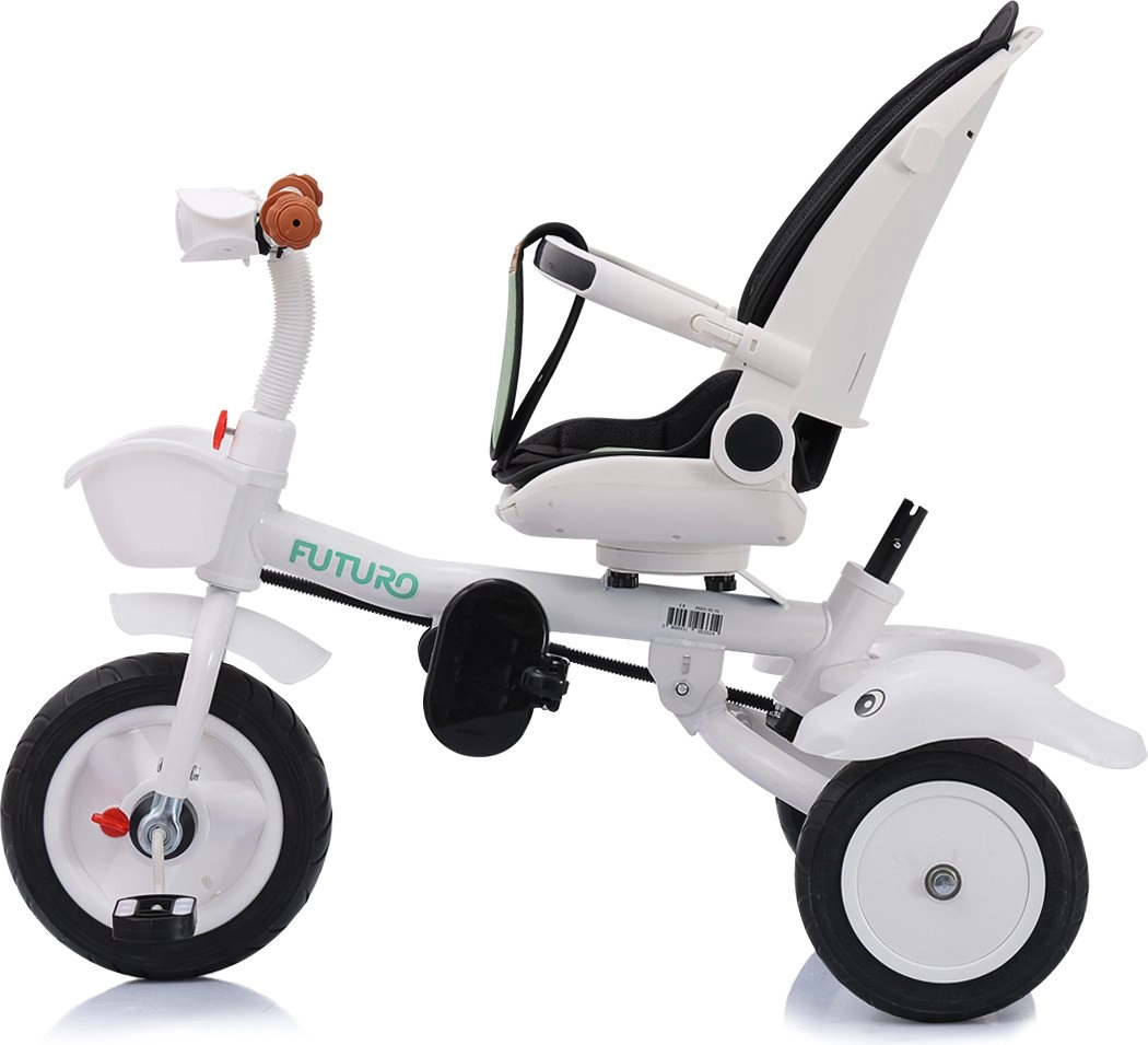 Multifunctioneel product Chipolino Driewieler met kap Futuro met 2 verschillende gebruikswijzen: de ouder duwt het kind of het kind bestuurt het speelgoed zelf met behulp van de pedalen. De driewieler wordt een geweldige metgezel die meegroeit met het kind.