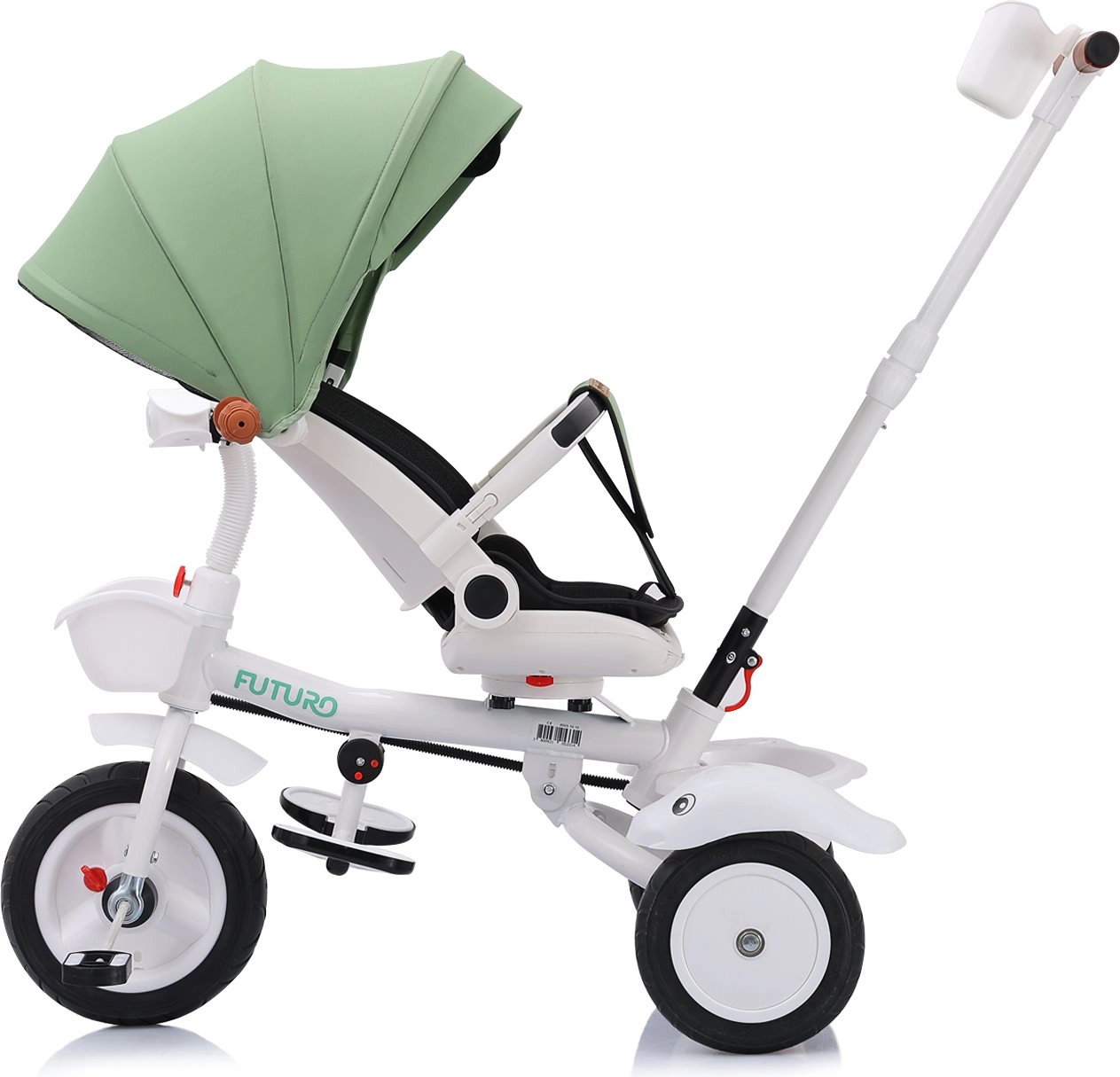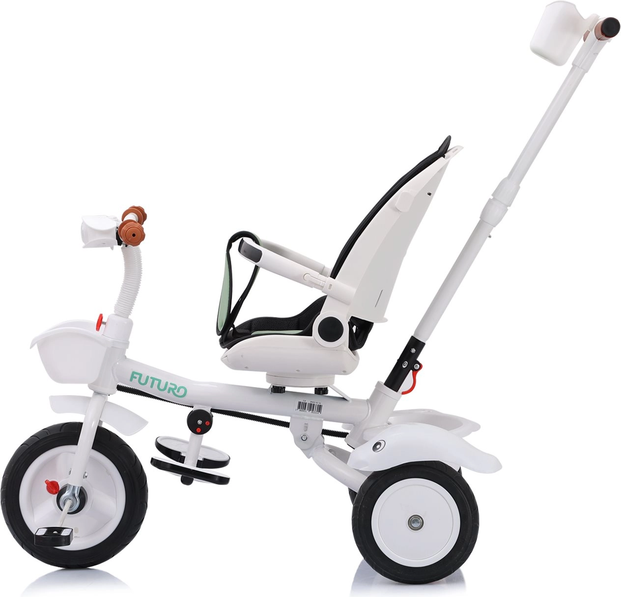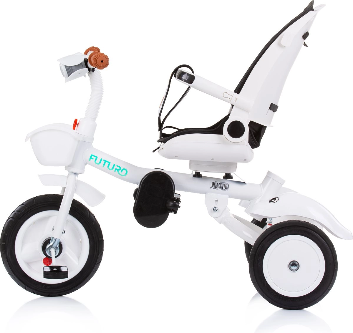 Multifunctioneel product Chipolino Driewieler met kap Futuro met 2 verschillende gebruikswijzen: de ouder duwt het kind of het kind bestuurt het speelgoed zelf met behulp van de pedalen. De driewieler wordt een geweldige metgezel die meegroeit met het kind.