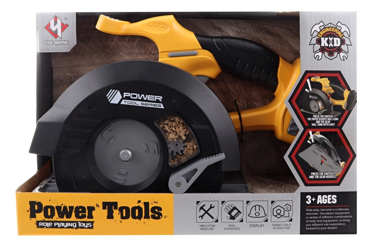 De cirkelzaag licht op en maakt geluiden wanneer batterijen zijn geplaatst, wat het spel extra realistisch maakt.