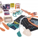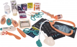 De set bevat verschillende medische instrumenten zoals een stethoscoop, thermometer, tandheelkundige spiegel en meer.