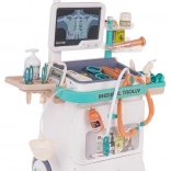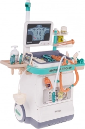 Deze magische medische trolley is licht en eenvoudig te bedienen dankzij de grote wielen en de praktische handgreep. Uw kind kan arts, oogarts, cardioloog of tandarts worden. De set bevat een paneel met een monitor die het hartslag- en alarmsignalen nabootst, en de afbeeldingen van ECG en röntgen kunnen worden verwisseld. Geschikt voor kinderen vanaf 3 jaar.