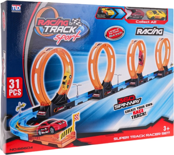 Maak kennis met een racebaan die urenlang plezier en adrenaline biedt voor kinderen vanaf drie jaar. Deze eenvoudig te monteren set bevat 31 onderdelen die samen een betoverende baan vormen met vier grote 360°-lussen. Gemaakt van hoogwaardig kunststof en ontworpen in vrolijke kleuren om elk kind te boeien.