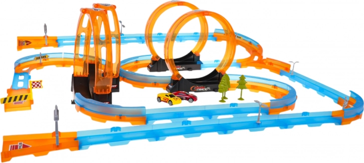 Ontdek het plezier van dynamisch spelen met deze racebaan, ideaal voor kinderen vanaf 3 jaar. Gemaakt van hoogwaardige kunststof, eenvoudig te monteren uit 59 onderdelen tot een spannende baan vol uitdagingen en plezier.