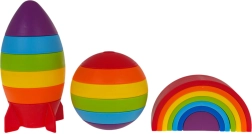 Deze veelzijdige sensorische bouwset brengt kinderen een wereld vol creativiteit: met 19 lichte en duurzame onderdelen bouwen ze moeiteloos een raket, regenboogbogen en een kleurige bal. Spelen met kleuren, vormen en het stapelen stimuleert op natuurlijke wijze de fijne motoriek, logisch denken en geduld, terwijl de opvallende kleuren kleurherkenning en zintuiglijke waarneming ondersteunen.