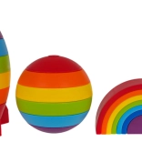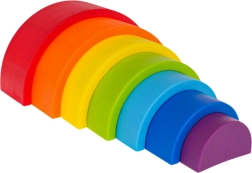 Bouw een regenboog, oefen balans en probeer nieuwe combinaties van bogen. Kinderen trainen hun fijne motoriek en leren tegelijk kleuren en volgorde.