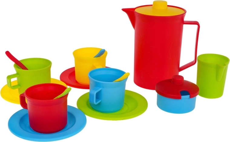 Bekers, bordjes, lepeltjes en een theepot zijn perfect voor een theefeestje. Heldere kleuren nodigen uit tot spelen en stimuleren de verbeelding.
