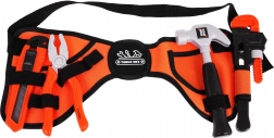 Textiele riem met lussen en zakken voor de volledige uitrusting – kinderen hebben hamer, tang of schroevendraaier altijd bij de hand. Maximale omtrek circa 84 cm.