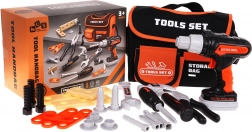 Volledig uitgeruste kindergereedschapsset met een praktische tas en een interactieve elektrische boormachine voor kleine klussers vanaf 3 jaar. In de verpakking vind je maar liefst 25 onderdelen, waaronder verwisselbare bits, een hamer, een tang en schroevendraaiers. De tas met schouderriem en handvat maakt dragen eenvoudig, de batterijboormachine kan schroeven vast- en losdraaien en heeft een uitneembare accu zoals een echt gereedschap.